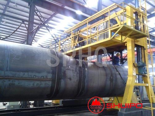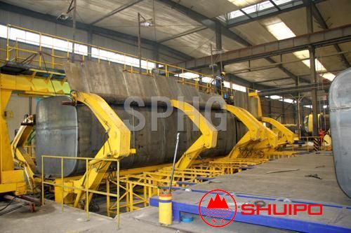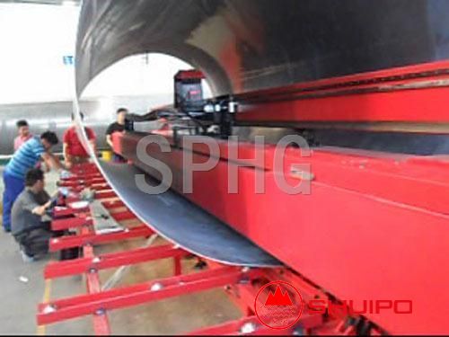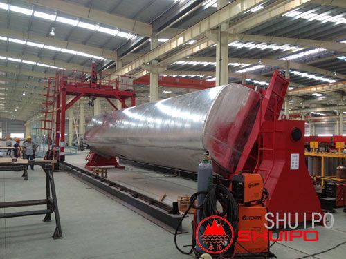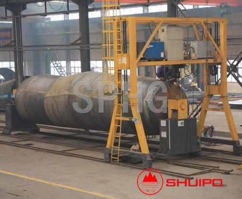 罐体制造自动化生产线研发了罐体制造从钢板下料、板材铣边、钢板对接、卷筒、整形、组装、焊接、成形等加工工序的先进制造工艺和各工工序上自动化制造装备;开发一套远程集中控制系统,实现制造工艺编制、生产计划安排、生产过程监控、生产和物料管理等一体化控制。