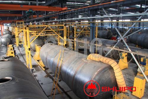 罐体生产线从钢板下料、板材铣边、板材对接、卷筒、整形、组装、焊接、成型等先进的制造工艺和各工序自动化制造装备;开发一套远程集中控制系统,实现制造工艺编制、生产设计安排、生产过程监控管理等一体化控制。