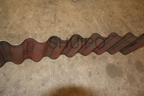 波纹板成型机主要分为机架、驱动部分、上压轮、下压轮、进料导向机构、以及前后工作台,波纹板成型机是通过同时旋转的上、下压轮,将平板加工成波纹状,成型效果一致性好,效率高,波纹的高度调整有电机驱动,通过操作控制箱上的按钮调整波纹高度范围,调整方便,性能可靠。