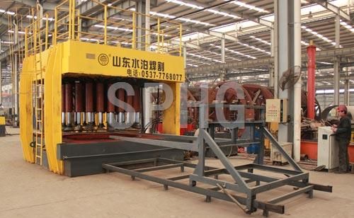 涨形机是水泊焊割(SPHG)在积累了多年的焊接工艺和设备调试技术并吸收国外先进技术的基础上自行开发、研制的一款封头涨形专用设备。它是利用我们常见和常用的液压系统制动液压缸,利用模具把工件压紧,通过高压水机往模具里注水来完成涨形的。